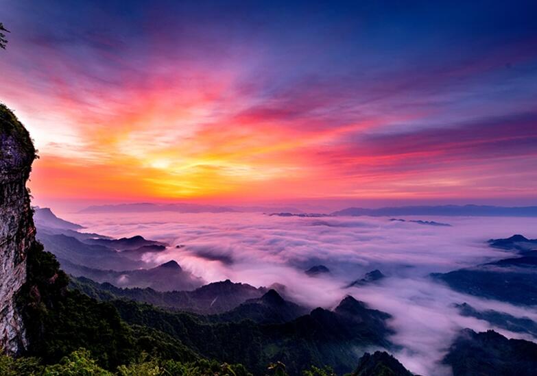 摩圍山下色,明月峽中聲。摩圍山屬于大婁山余脈,位于彭水西南部,平均海拔約1300米,最高峰官山海拔1676米;年平均氣溫14.9℃,森林覆蓋率91%,負(fù)氧離子含量8000—13000個(gè)/立方厘米。區(qū)域內(nèi)自然資源豐富、生態(tài)景觀奇特、珍稀動(dòng)植物眾多,旅游資源單體33個(gè),涵蓋8個(gè)主類、11個(gè)亞類、19個(gè)基本類型。有一線天地縫、石窟溶洞、百里石林、千仞絕壁、萬(wàn)丈天坑等地質(zhì)奇觀,有云霧幻化、瑞雪飄飛、樹(shù)掛冰晶、旭日升騰、彩霞繽紛等天象麗景,有名藥山珍、奇藤異草、山花野果、千里碧海、古木參天等山林秀色,還有眾多國(guó)家重點(diǎn)保護(hù)野生動(dòng)、植物和數(shù)百種中草藥材。